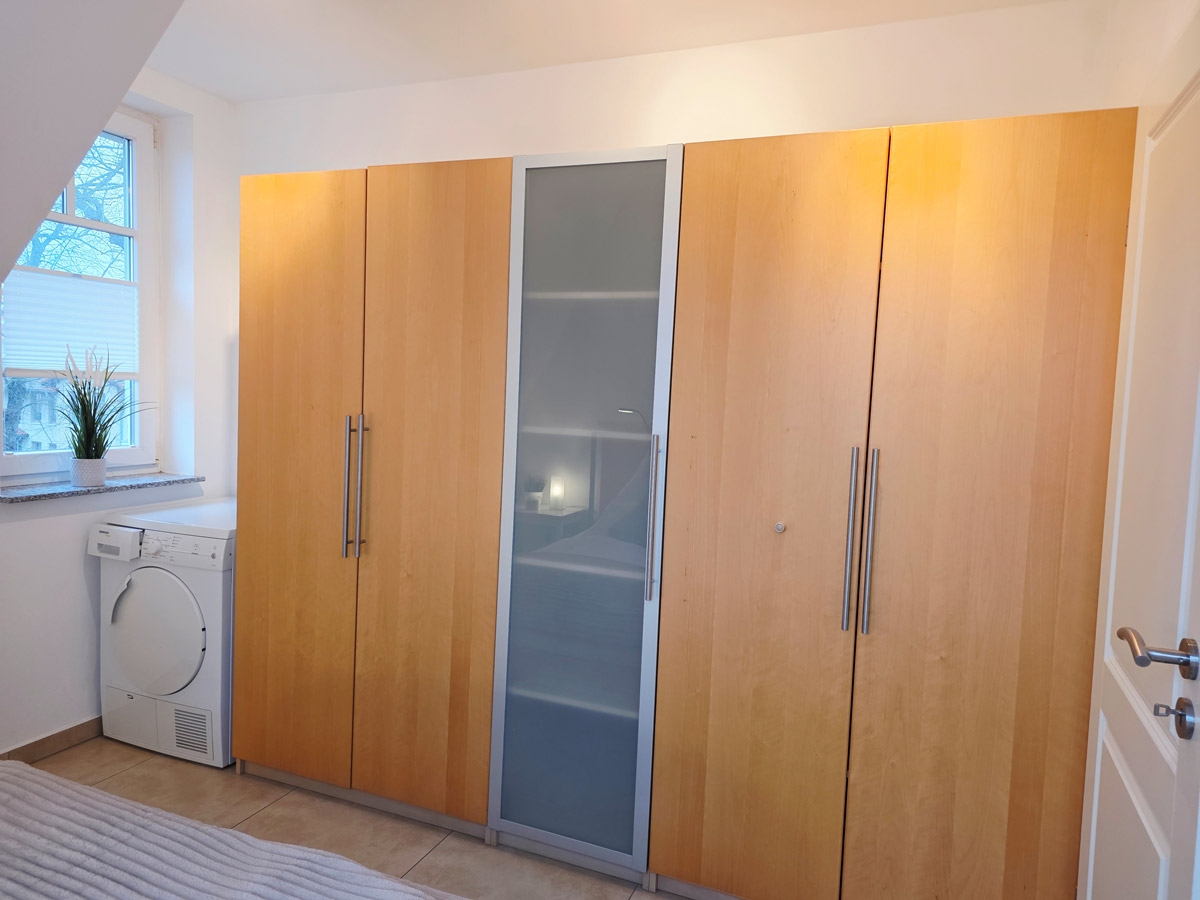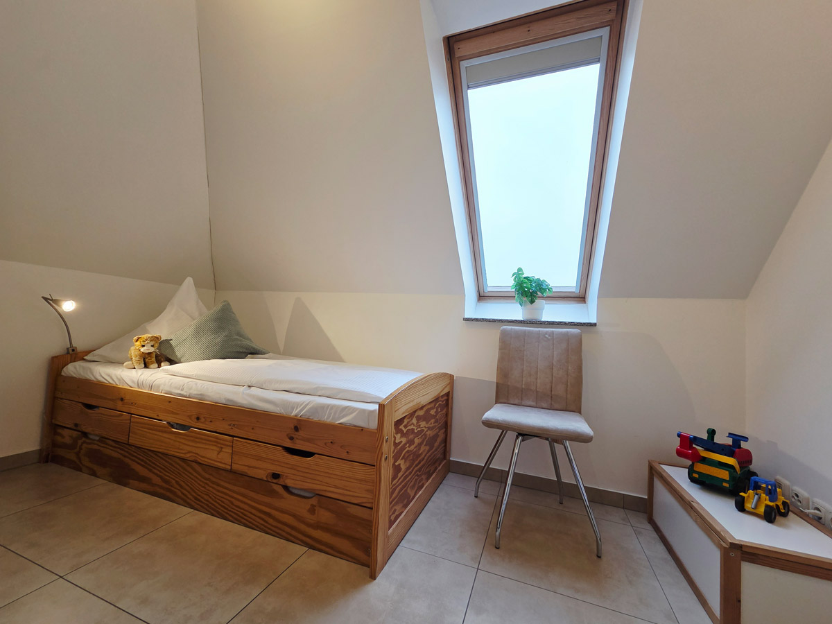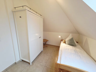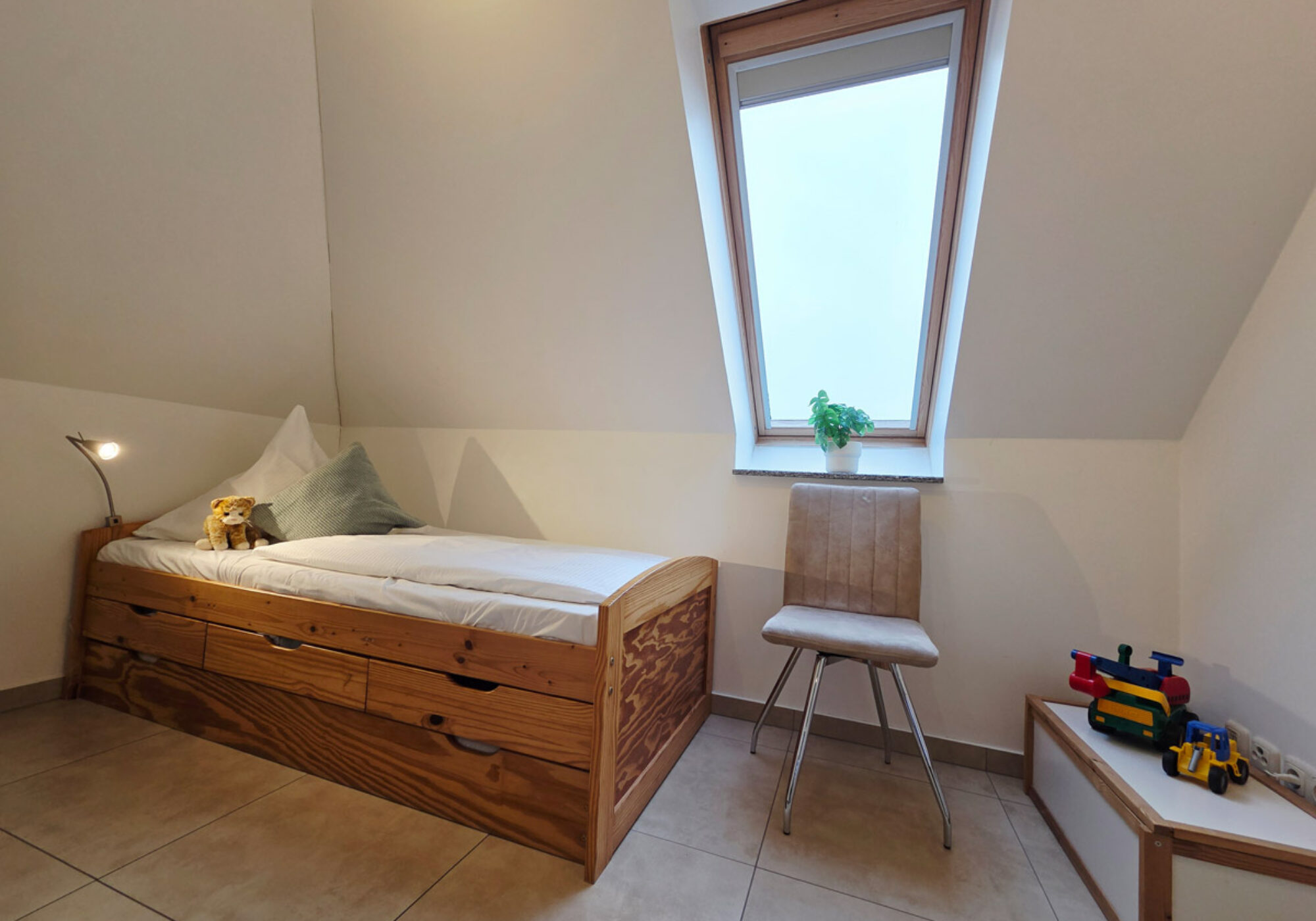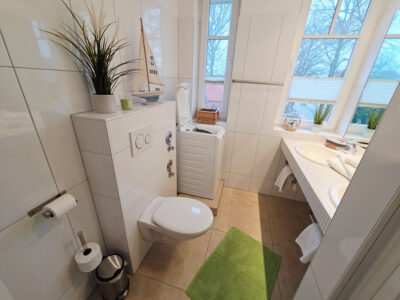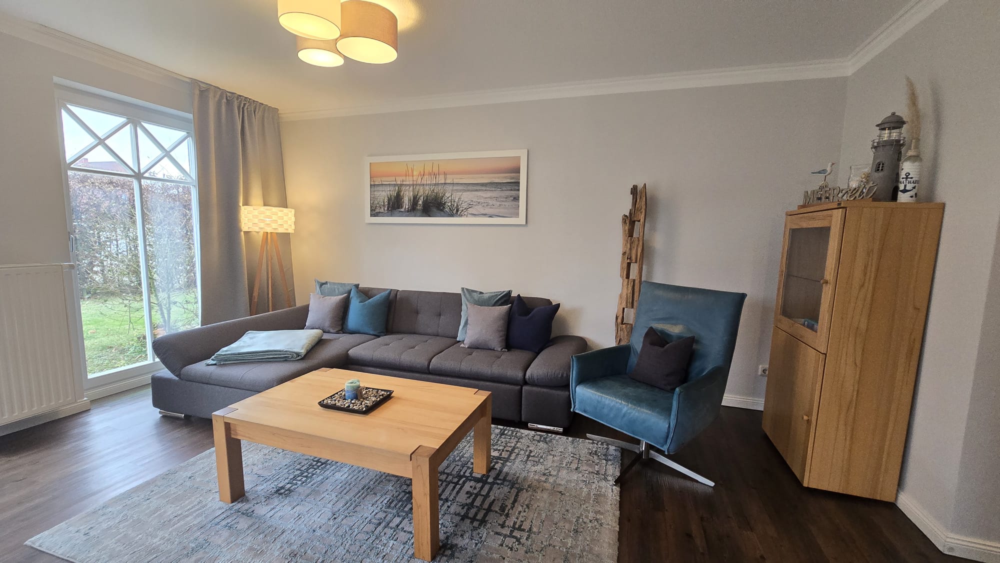 Die gemütliche Ferienwohnung verfügt über einen offenen Wohn- und Küchenbereich mit integrierter Küche, einem Schlafzimmer mit einem Doppelbett (die Maße sind 1,60 m + 2,00 m) und im Wohnzimmer ist eine ausziehbare Schlafcouch (Maße 1,60 m x 2,00 m) sowie ein Badezimmer mit Dusche und WC.